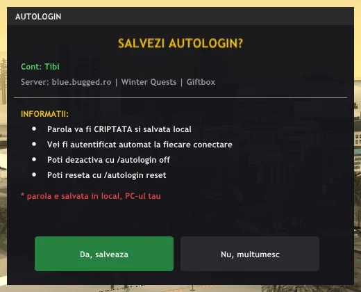 Mod AutoLogin – logare automata pe SAMP Acest mod iti permite sa te loghezi automat pe orice server SAMP, fara sa mai scrii parola manual de fiecare data. Cu acest mod poti salva mai multe conturi pe acelasi server. Cum functioneaza Prima data cand […]